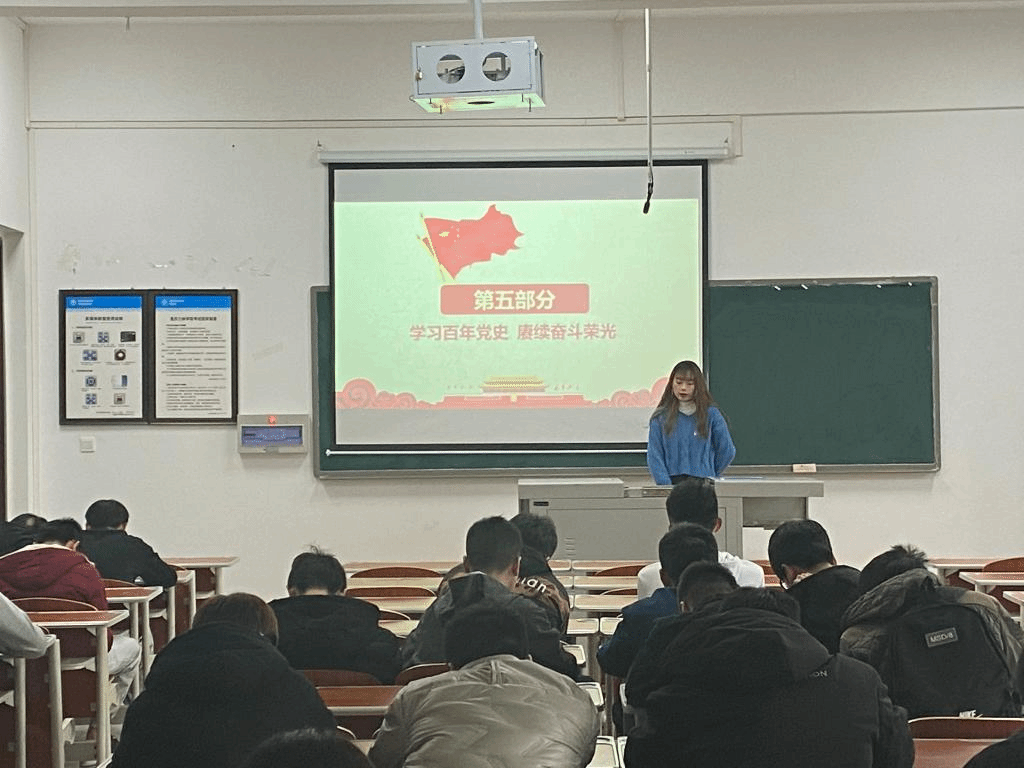 3月21日,学院学生党支部党员蒋佳雪以“学习百年党史 赓续奋斗荣光”为题,为2018级土木工程专业4班全体党团员讲党史“微党课”。