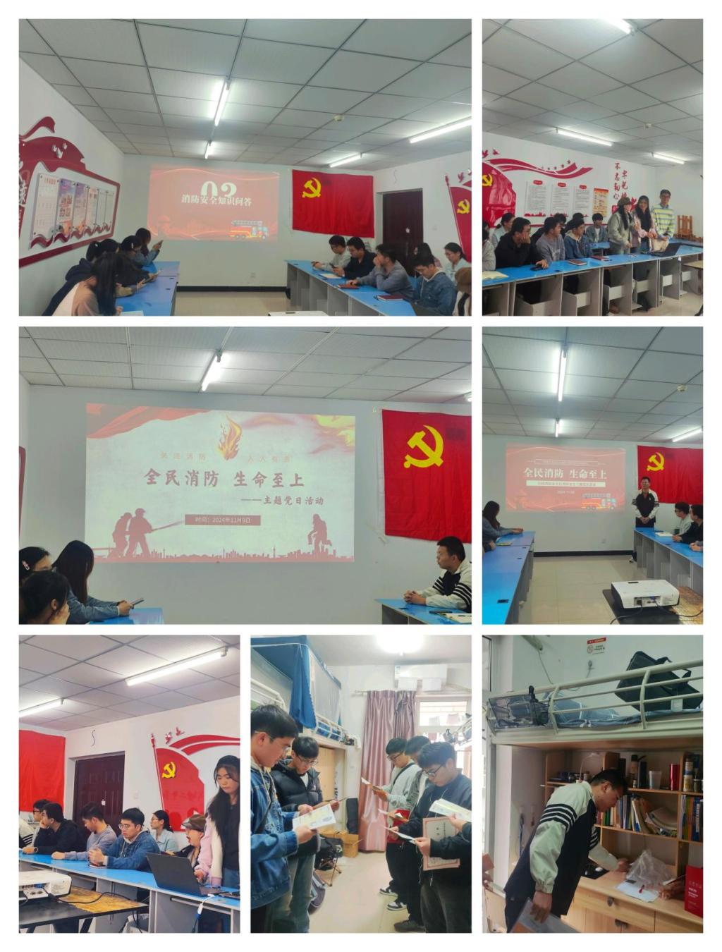 活动中,学生党一支部委员李浪介绍了全国消防安全日的由来,并结合自身分管的学院公寓管理工作分析了当前宿舍主要存在不拔电源插头、手机和电脑充电头等全隐患,强调火灾防范不能放小失大,主动培养随手拔电的习惯,切实消除宿舍安全隐患。学生党员就消防安全如何防范展开了激烈的交流讨论,学生第二党支部党员唐道敏分享了消防安全二十条,校园失火教室和宿舍逃生方法及注意事项,家庭、宿舍防火十法。随后,主要围绕消防工作的方针和原则、引发火灾的原因、火灾逃生和灭火器的使用等方面,进行消防安全常识问答,在场人员争先进行抢答,并且正确率极高。最后,全体党员深入学生宿舍为同学们发放消防安全手册,宣传讲解消防安全知识,排查安全隐患,提醒同学们注意冬季防火,尤其是电吹风的使用。