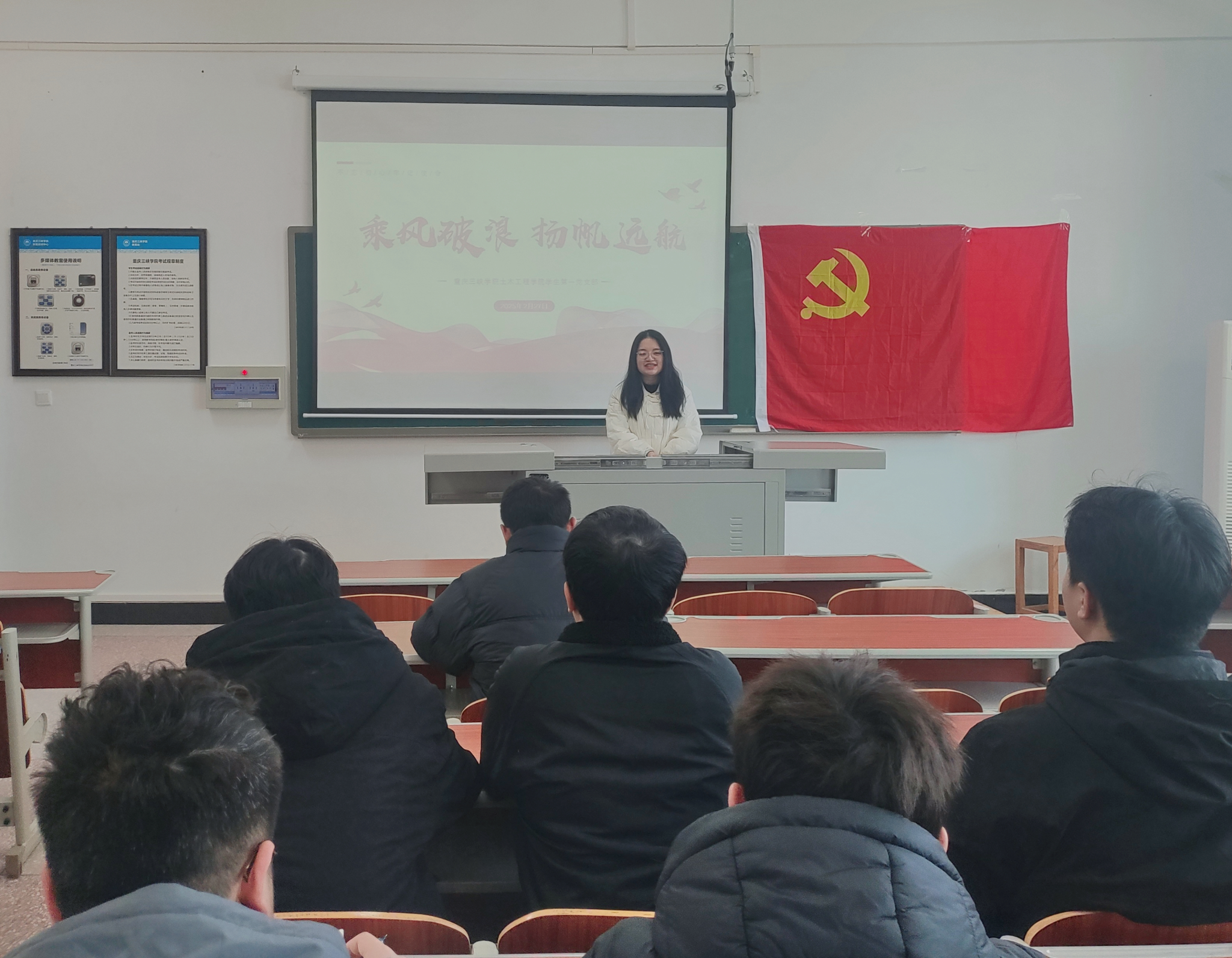 2025年2月27日,学院学生第一党支部开展了题为“2025乘风破浪,扬帆远航”的主题党日活动。活动由党支部书记杨楠主持,全体在校党员参会。
