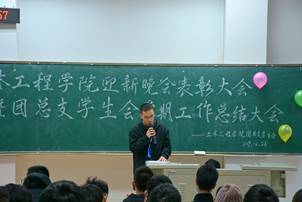 会上,团总支学生副书记陈明浩对本学期各个部门开展的工作进行了概述,提出了下学期的工作要求。学生会主席陈松宣布了优秀干事的名单并颁奖。最后,学院团总支副书记洪鹏老师做了总结发言,告诫全体团学干部干事要不忘初心,热爱初心,坚守初心,强调发现不足才是促使我们进步的动力,同时为团学会送出了最诚挚的祝愿。