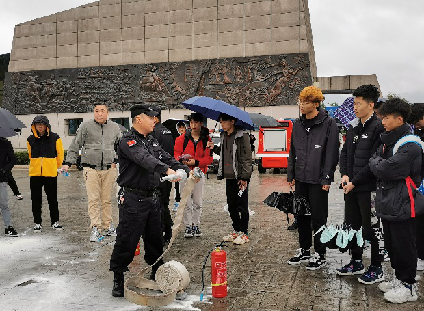 同学们在保卫处同志的带领下,亲身体验了如何使用灭火器灭火,学习了如何组装和使用消防栓,随后分批次地参观了学校的小型消防室。参加活动同学在保卫处同志对一系列消防器材安全使用的耐心讲解下,通过认真学习和实际操作,有效地掌握了正确的火灾事故处理方法。