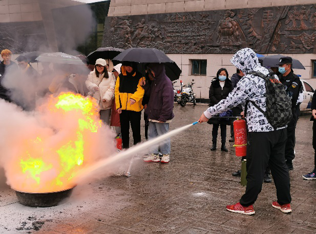 为提高学生的消防安全意识和自防自救能力,全力打造平安校园,坚决遏制秋冬季时期火灾高发势头,学院联系保卫处相关人员,于11月27日下午向2020级安全工程一班的同学们讲解了消防器材使用方法。