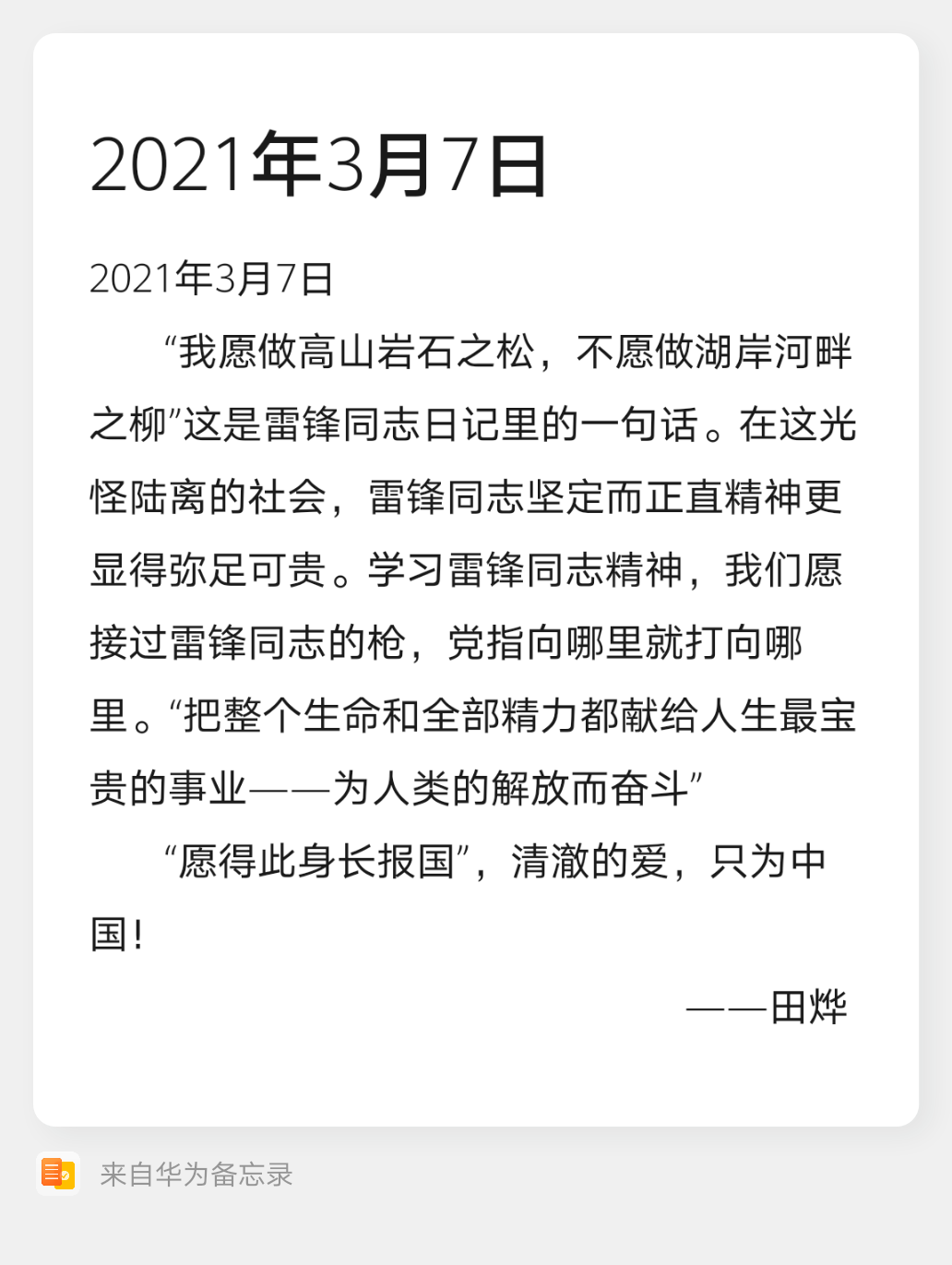 通过对雷锋精神的学习和践行,希望同学们能把雷锋的崇高理想信念和道德品质追求转化为实际行动,以实际行动践行新时期雷锋精神。
