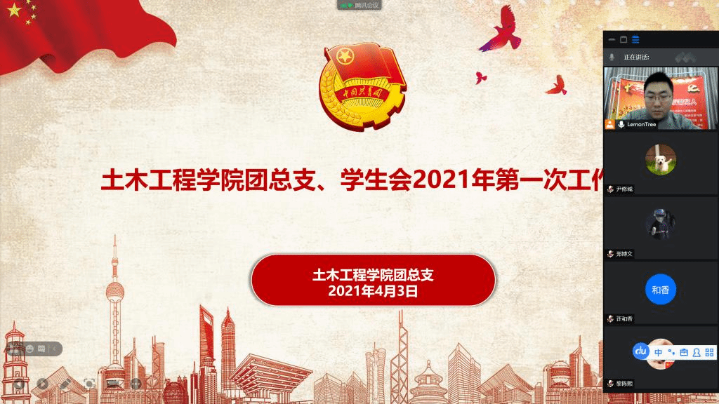 为推进团学组织工作的有序开展,明确下一步工作方向,4月3日晚,团总支、学生会2021年春季学期第一次工作会通过腾讯会议平台召开,会议由团总支副书记洪鹏主持、团总支学生副书记许和香、学生会主席团成员尹修城、郑博文、黎陈熙参会。