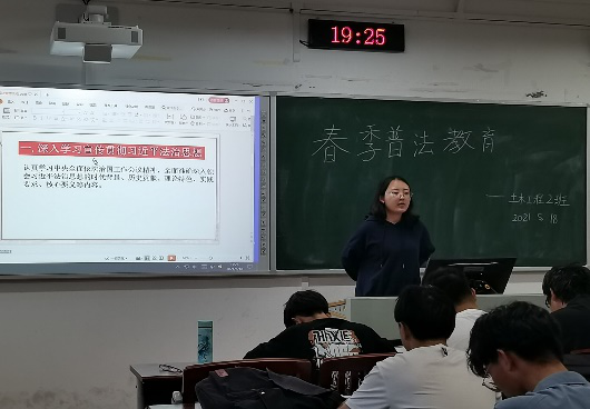 为进一步引导青年大学生树立社会主义法制理念,增强法治意识,5月18日晚,9728太阳集团2020级土木类2班在明辨楼1栋314教室召开了“普法教育”主题班会,辅导员高敏组织并主讲。