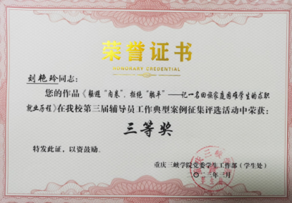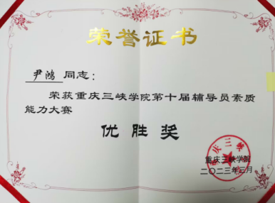 近日,我院辅导员杨楠荣获2022年重庆三峡学院“优秀辅导员”称号,辅导员尹鸿荣获重庆三峡学院第十届辅导员素质能力大赛优胜奖,辅导员刘艳玲荣获学校第三届辅导员工作典型案例三等奖、辅导员朱希敏荣获学校第三届辅导员工作典型案例优秀奖。三项荣誉的获得,充分反映出我院学工队伍是一支有担当、有能力、信得过的队伍。土木学工人将继续保持良好状态,工作上戒骄戒躁,发扬吃苦耐劳精神,奋发向上,砥砺前行,将学生工作做实做细。