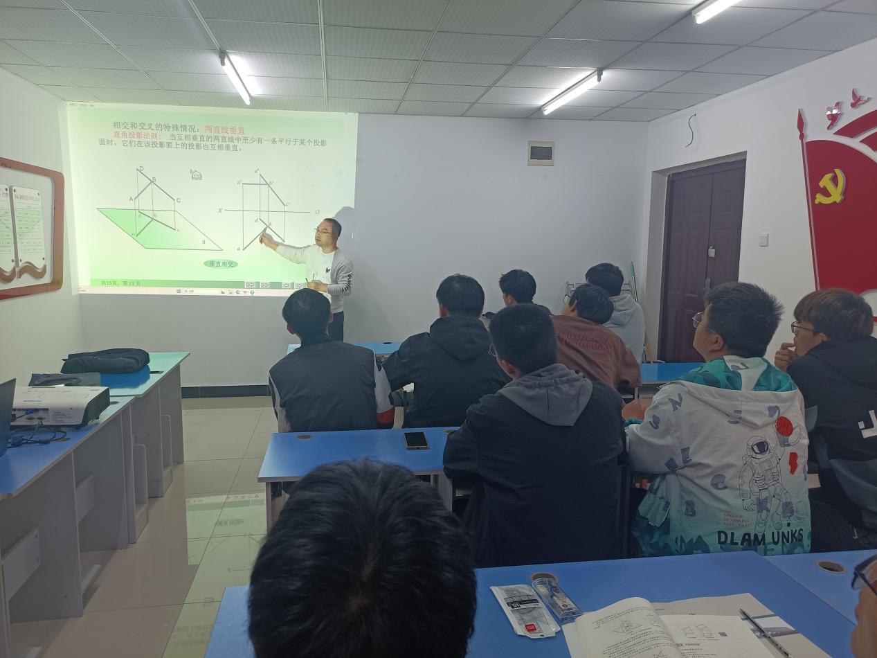 在前期通过问卷收集及学风建设交流座谈会了解到大一同学们对《画法几何》该课程存在疑问,在专业学习上有着强烈的求知欲,邹建华老师针对《画法几何》进行了答疑,就本门课程的病症“三面投影的特点、两点的相对位置和重影点可见性”等进行对症下药,利用理论知识体系搭建这一良方和现实器材工具为同学们构建起三维立体的知识结构,将课后难题小病灶一一讲解消除。