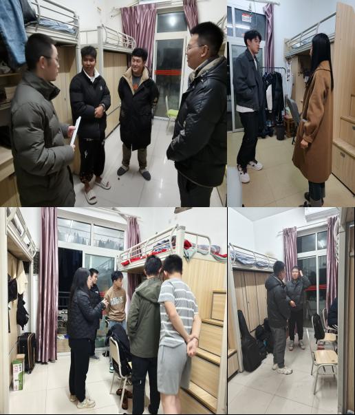 走访过程中,老师和同学们进行了亲切的交流,了解同学们的寒假生活情况及新学期的规划安排,对空调更换有疑问的作出解答;同时叮咛同学们要尽快的调整作息时间规律,快速融入学习之中,近期有补考的同学抓紧时间复习做到诚信考试。在和各年级同学交流学习生活的同时,老师们也提醒大家严格遵守学校规章制度,按时归寝和整理宿舍内务,提高宿舍安全意识,严禁使用违禁电器,希望大家互帮互助,共同营造和谐友爱,积极向上的宿舍文化氛围。同学们也纷纷表示,会认真遵守相关规章制度,提高宿舍安全防范意识、明确学习目标、提高综合素质,以龙腾虎跃的姿态迎接新学期的学习和生活。