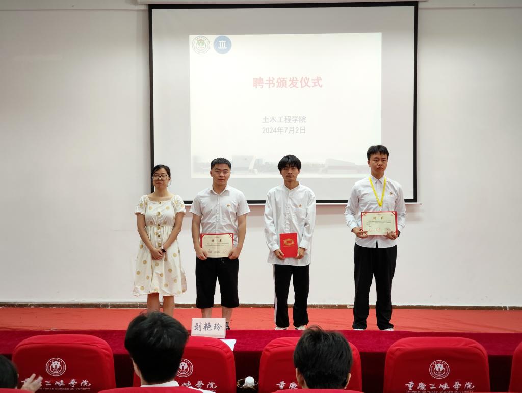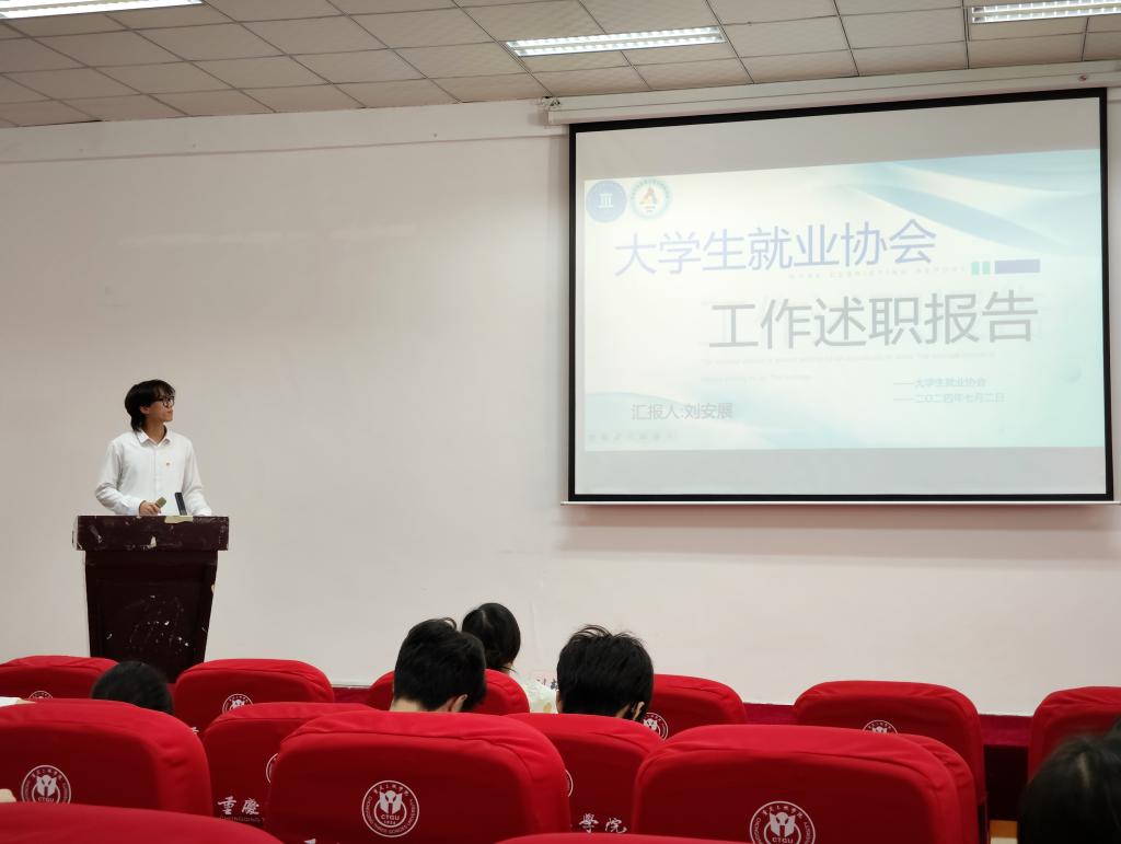 学院学生会团主席团成员蹇毅对本学期工作作了汇报总结,肯定了本学期工作的成绩,明确了下学期工作重点。接着,各部门负责人和协会代表分别述职。罗雪宣读获奖部门、优秀负责人和优秀工作人员名单并为他们颁奖,刘艳玲为学生干部和学生班主任颁发了聘书。