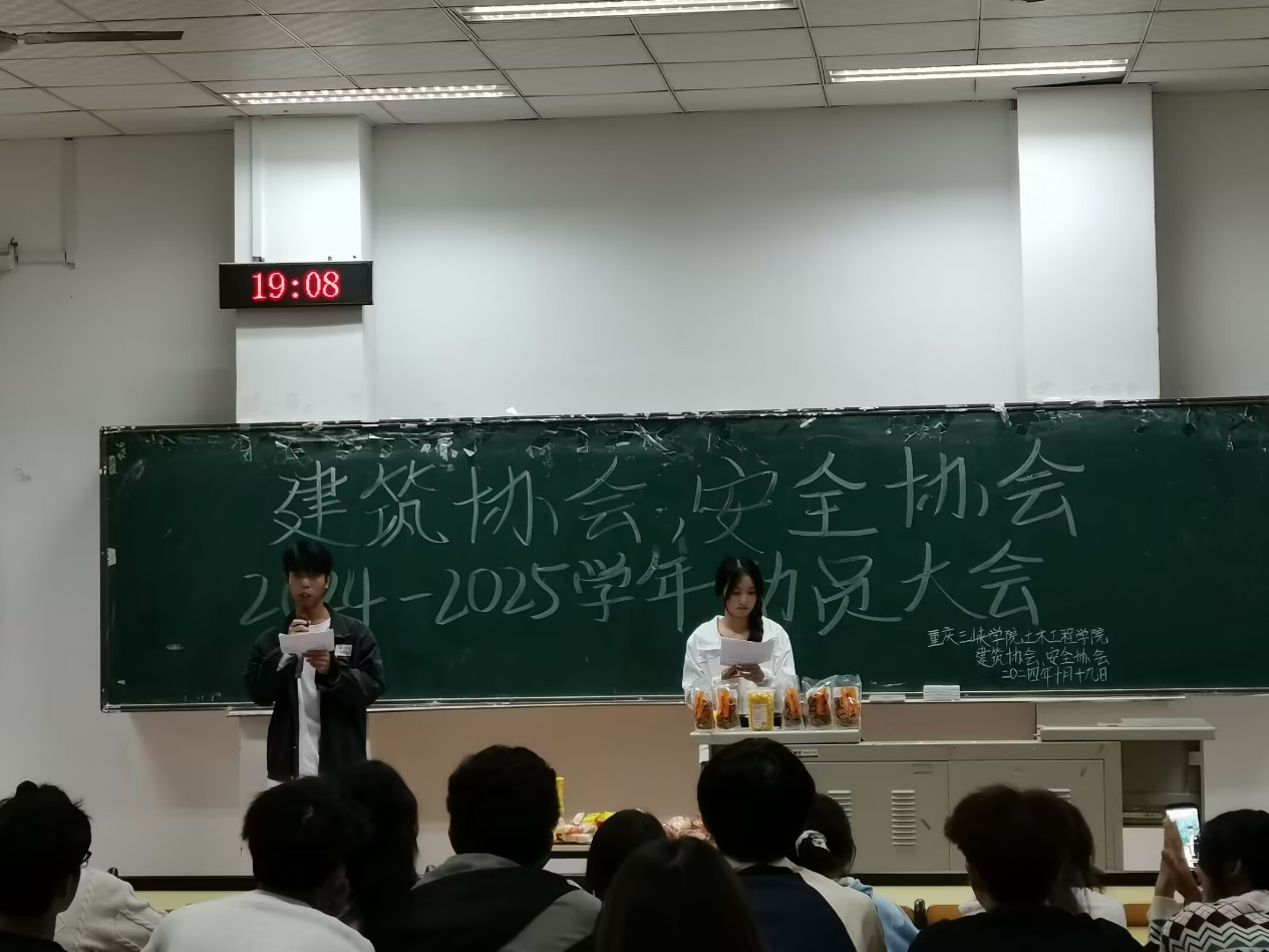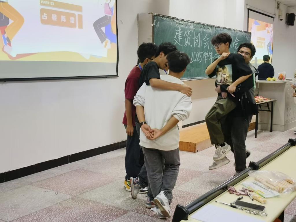 建筑协会负责人和安全协会负责人先后上台发言,为新生会员详细讲解建筑协会、安全协会的发展历程及特色社团活动,鼓励同学们积极参与各类学科竞赛,列举了中国国际大学生创新大赛、“挑战杯”全国大学生系列科技学术竞赛、重庆市大学生结构设计竞赛暨全国大学生结构设计竞赛重庆市分区赛、全国大学生节能减排社会实践与科技竞赛等专业竞赛为例,鼓励同学们以学院协会为依托,希望每一位同学们都能有机会参与到“竞赛”,为社团发展注入源源不断的活力。随后,协会负责人与新生会员开展了击鼓传花、占领阵地、数字炸弹等三个互动游戏,会议现场氛围热烈。