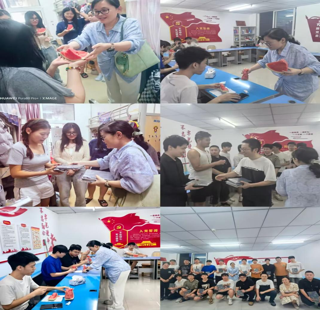 解难题、传温情,细筑离校“连心桥”。党总支书记罗雪及全体辅导员又深入到毕业班的寝室,询问他们的就业情况和未来规划,叮嘱同学们文明离校,在离开校园后要注意安全、保持良好的生活习惯,为同学们送上满含学院毕业祝福的清凉解暑西瓜和定制笔记本。宿舍内洋溢着温馨与感动,同学们对学院领导和老师的到来感到十分惊喜和温暖,纷纷表示会将这份关怀铭记在心,在今后的日子里努力奋斗,不辜负学院和老师的期望。