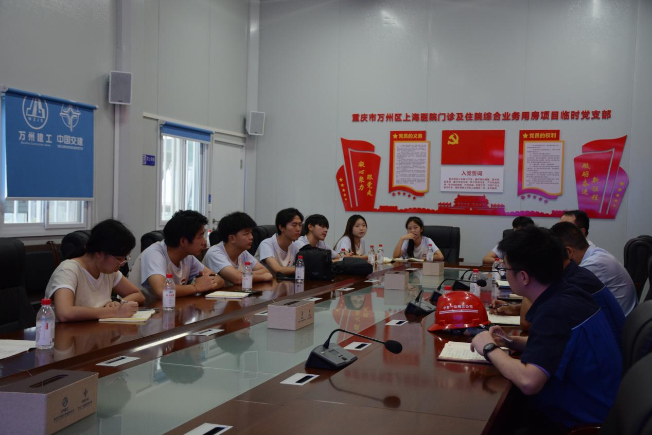 为深入学习贯彻习近平总书记在新时代推动西部大开发座谈会和视察重庆的重要讲话重要指示精神,推动落实《百万高校毕业生等青年留渝来渝就业创业行动计划(2024—2027年)》,走进一线工地长才干,助力科技创新共发展。6月30日上午,学院团总支负责人刘艳玲带着学生代表来到中交一公局三公司万州上海医院新院区建设项目。校企双方围绕项目工程信息管理、技术创新应用、专业发展前景等话题,展开热烈探讨。