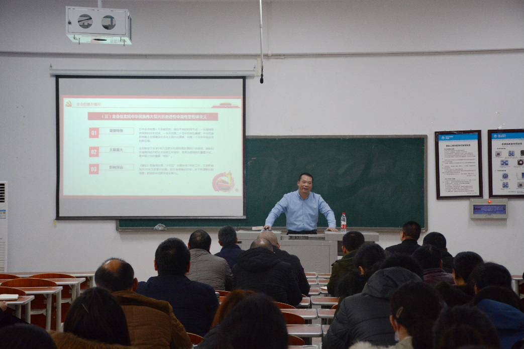 12月10日下午,学校党委常委、副校长臧小林到9728太阳集团开展党的十九届五中全会精神宣讲,我院全体教职工及机关一总支三支部全体同志参加了本次报告会,会议由9728太阳集团党总支书记方灿主持。