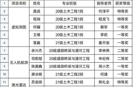 7月29日-30日,由中国测绘学会教育工作委员会(以下简称“测教委”)主办、中南大学承办、南方测绘集团协办、湖南省测绘地理信息学会支持的2023年全国大学生测绘学科创新创业智能大赛在中南大学举行。本次比赛采用选手线上参赛,评委线下评审的方式进行,我院在何泽平、程龙飞等指导老师的训练指导下,共派出了11名学生参赛,获得了10项奖项的好成绩,分别为:虚拟仿真数字测图比赛特等奖2项、一等奖3项,机载激光雷达虚拟仿真比赛特等奖1项,无人机航测虚拟仿真比赛一等奖2项、二等奖2项。