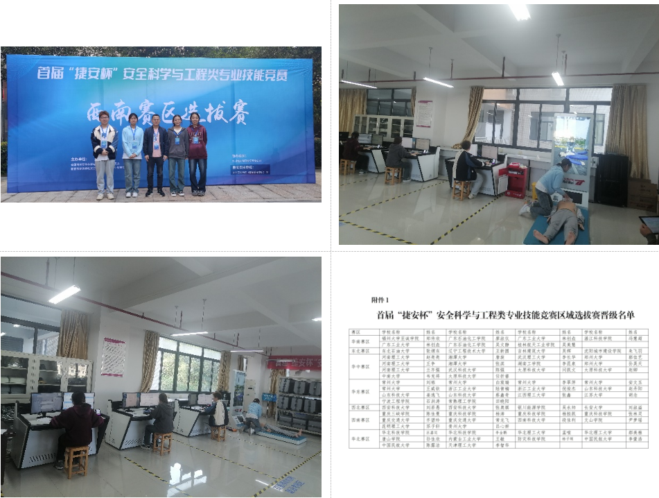 大赛采用初赛、区赛和全国总决赛三级赛制。前期经过校级初赛的筛选,刘太祥、郭嘉琪、刘乐以及陈佳曼四位同学在安全工程系教师郭正超带领下,在重庆科技学院参加西南赛区选拔赛,获得团体第三的好成绩,其中陈佳曼同学成功进入全国总决赛。