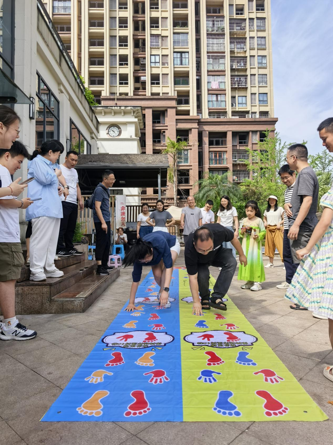 “明是非,走正道”。根据地面图标用手或脚接触对应区域。既考验身体协调性,又提醒大家在工作和生活中要明辨是非,坚持走正道、做正事。