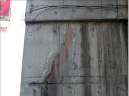 照片5-31 坎坎河桥0#台前墙竖向裂缝