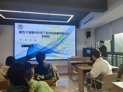 第二阶段, 2019级建筑与土木工程专业3名硕士研究生分别做了学术汇报。易文韬以论文中常用的分析方法《模糊综合评价法》为主题,从模糊数学概念、评价步骤、因素集、权重向量、评语集和评价矩阵的确定等方面详细介绍了模糊综合评价法的使用。张仕昕以北川县泥石流和西山沟泥石流为例,分析了模糊综合评价法在泥石流危险性评价中的应用。罗小勇以《酸性干湿循环作用下灰岩的溶解特性与力学特性》为主题,针对库区严峻的地质环境,将目前自己对三峡库区灰岩开展的相关研究进行了汇报。3位同学的报告各有特色,导师们的精彩点评也使同学们深受启发。